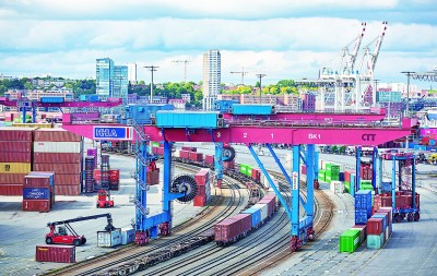 美国关税政策带来的不确定性正日益危及国际贸易,也给德国重要港口带来严峻挑战。英国德鲁里航运咨询公司近期发布的报告显示,3月下旬至5月中旬,德国汉堡港等待时间延长约49%。图为5月28日拍摄的汉堡港CTT集装箱码头景象。新华社记者 张帆摄